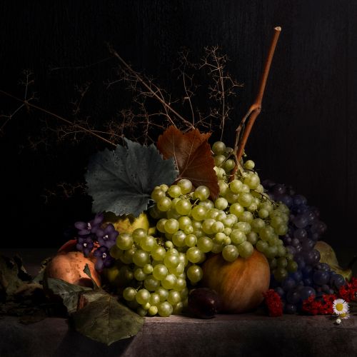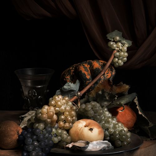 Fiori e Frutti è una collezione di nature morte contemporanee che dialogano con la grande tradizione pittorica europea, in particolare con la scuola fiamminga del Seicento.