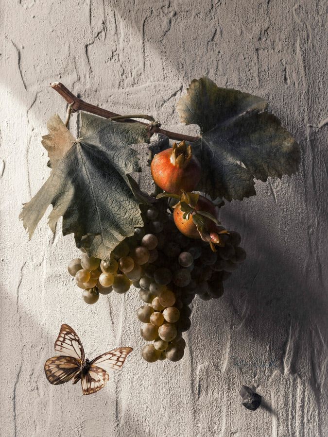 Oggetti umili, frutti, fiori e presenze animali diventano materia carica di tempo e simbolo. La fotografia assume il linguaggio della pittura non come citazione, ma come struttura: luce, composizione e silenzio costruiscono immagini essenziali, dove ogni elemento è necessario.